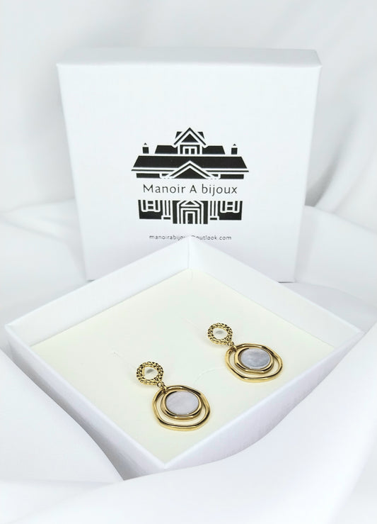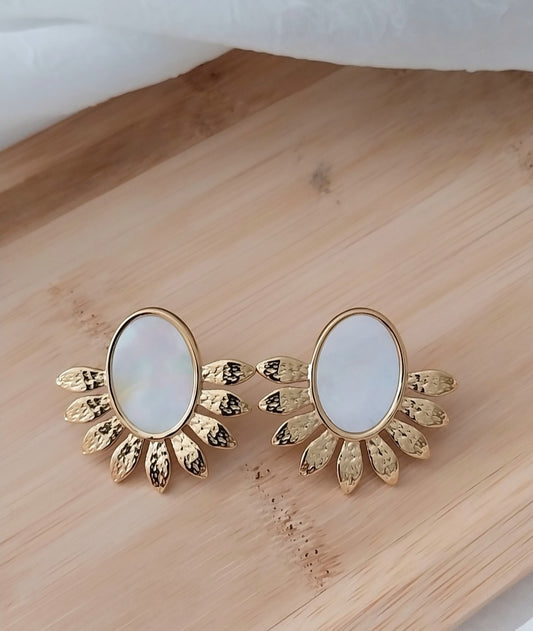 Boucles d'oreilles dorées La Rose blanche