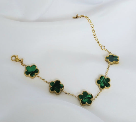 Bracelet Doré Rose Verte - Bijoux Fantaisie en Acier Inoxydable
